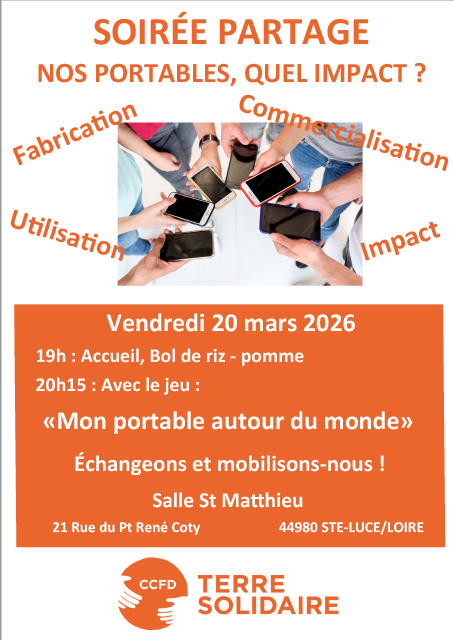 - CCFD : Soirée partage le vendredi 20 mars 19h